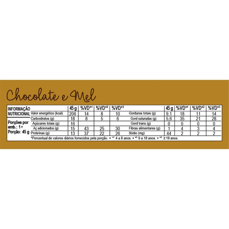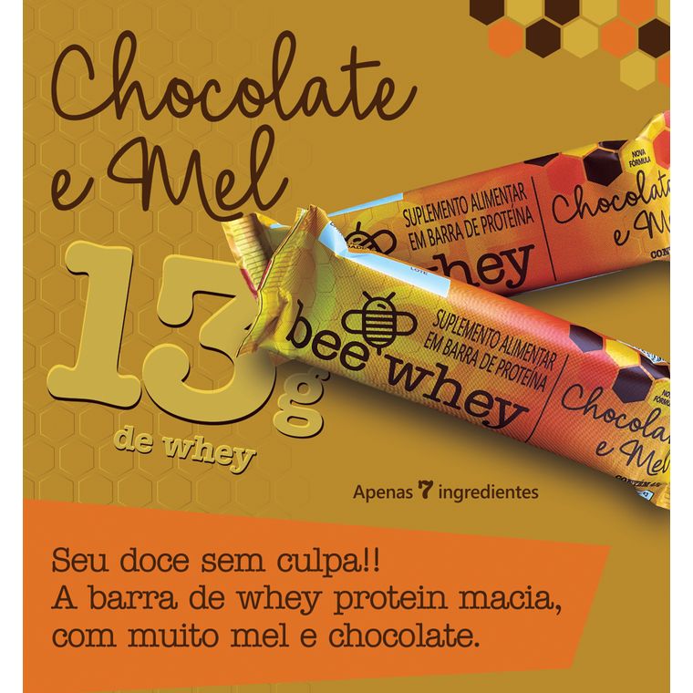 São 13 g de whey protein e 13 g de mel puro em uma barra macia, feita com poucos ingredientes e sem aditivos químicos.